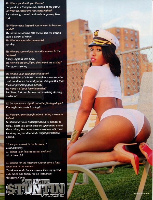 CharmMagazineStraight Stuntin Magazine Charm Featured In Straight Stuntin Magazine Issue #35 By En Sabah Nur The Konqueror - April 2, 2015 0 344 FacebookXLinkedinEmailTumblrTelegramMixVKDigg @MissEyE_Candy posing in the pages of Straight Stuntin magazine.
