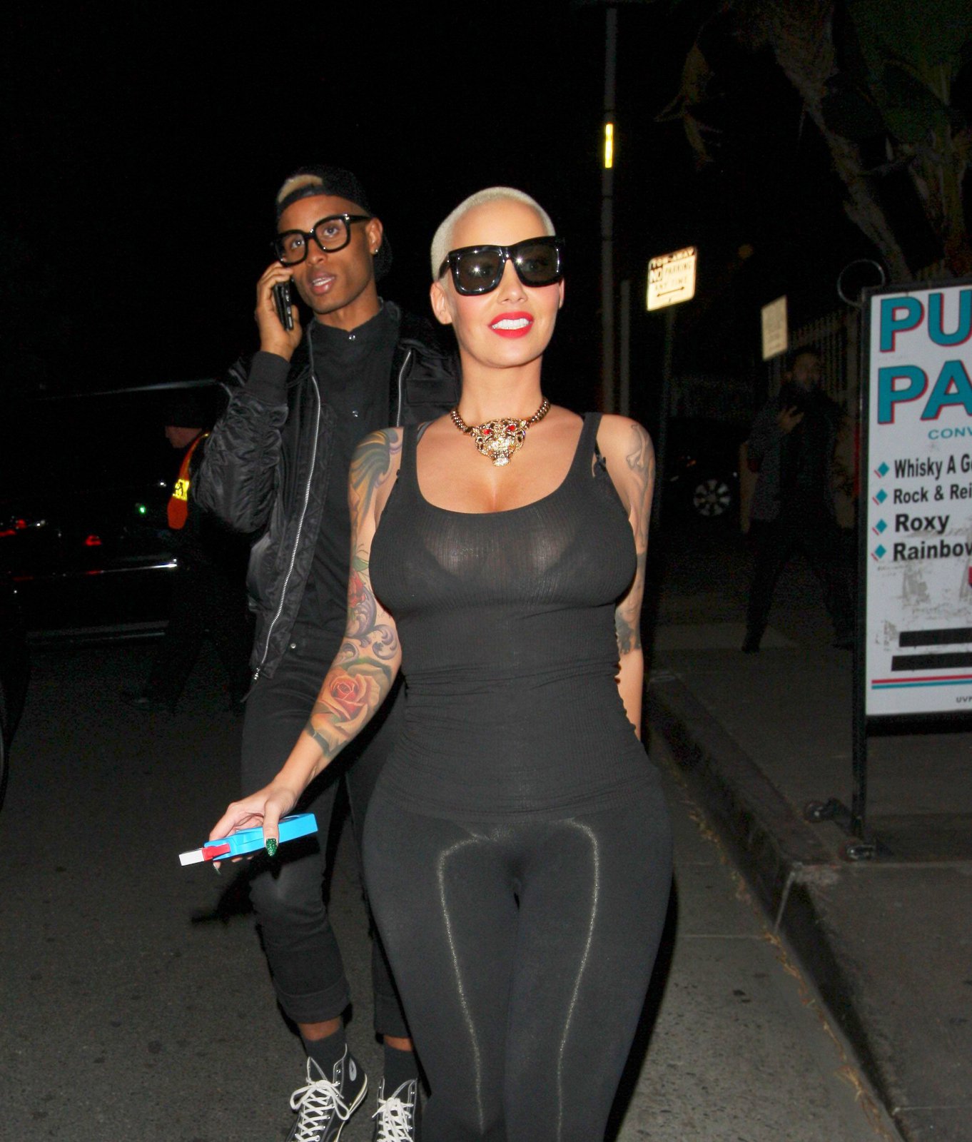 Amber RosepaparazziPicturesVideos Amber Rose @DaRealAmberRose Wears Fishnet Dress For A Night Out In Los Angeles By En Sabah Nur The Konqueror - November 13, 2015 0 349 FacebookXLinkedinEmailTumblrTelegramMixVKDigg Amber Rose had quite the night in Los Angeles..Amber donned a see-through fishnet dress with black underwear on Monday night..she was photographed arriving at the Ace of Diamonds gentleman’s club.