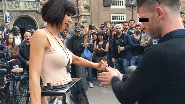 Milo Moiré invited strangers in London, Dusseldorf, and Amsterdam to reach into a reflective box and caress her breasts or vagina for 30 seconds.