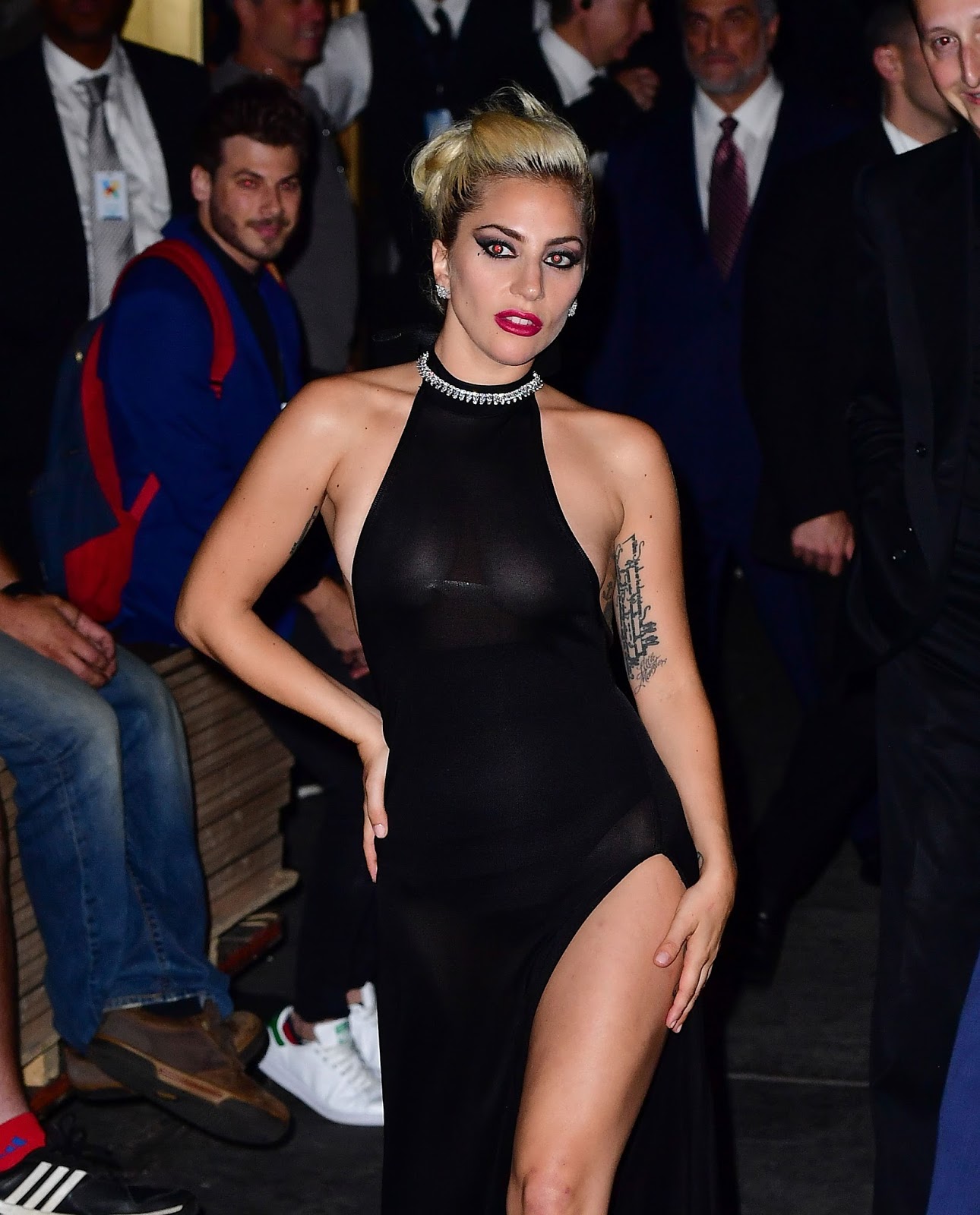B.A.W.G AlertLady GagapaparazziPictures Lady Gaga Rocks See-Through Dress By En Sabah Nur The Konqueror - September 21, 2016 0 346 FacebookXLinkedinEmailTumblrTelegramMixVKDigg Lady Gaga is at it again, this time going braless and showing her nipples and underwear in a black see-through dress at a recording studio in New York.