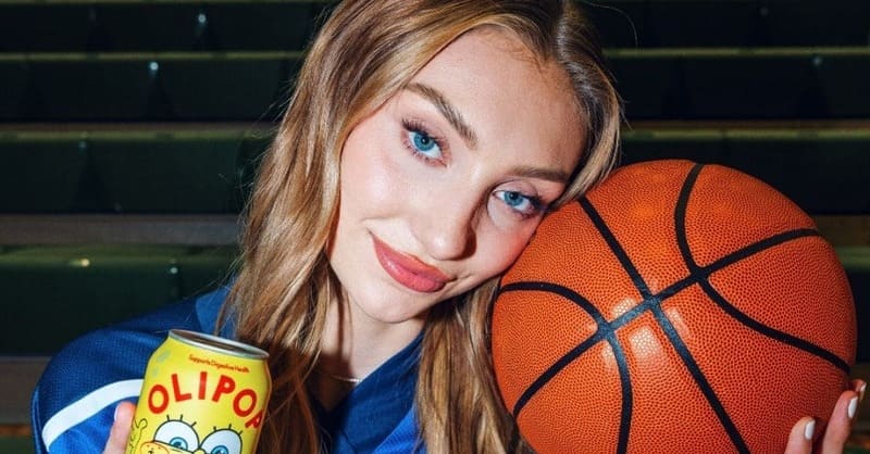 Cameron Brink, the forward for the Los Angeles Sparks, is featured in a promo for Olipop.