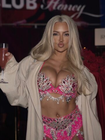 Lindsey Pelas totally stole the show at the Honey Birdette x Playboy Halloween Partyin West Hollywood. Her rhinestone-studded lingerie was next-level seductive, pushing boundaries and turning heads. That bra? It barely contained her, drawing everyone’s eyes to her jaw-dropping cleavage. Pure adult fantasy, for sure!