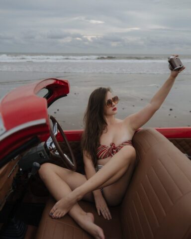 Isabella Ardley’s collaboration with Tatyana Kudryashova serves up serious vintage vibes, showcasing her fierce confidence. From a wild leopard bikini to a braless denim vest, she oozes bad-girl charm. Each shot leaves you wanting more; her playful smirk says it all!