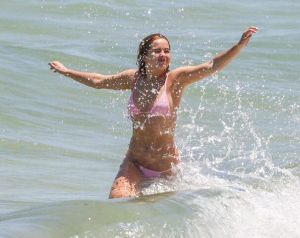 Addison Rae is living it up in Australia, flaunting her minimalist pink bikini. With her sun-kissed skin and playful splashes in the surf, she perfectly plays up the sultry beach vibe. That cheeky walk away? Total showstopper. Talk about making waves and memories.
